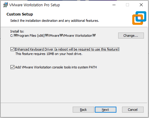 중요!! Enhanced Keyboard Driver를 설치하지 않을 경우 특정 OS (특히 Solaris)에서 대소문자가 랜덤하게 입력되는 상황이 연출 될 수 있습니다. 따라서 반드시 체크해서 해당 드라이버를 설치하도록 합니다.